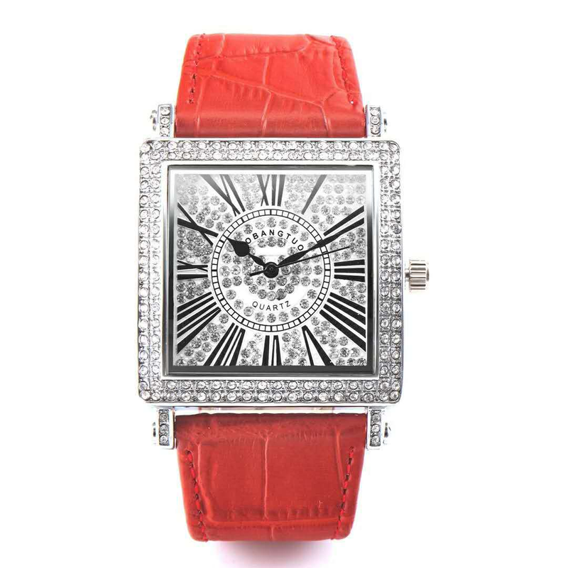 Orologio da studente di moda versatile su scala romana da donna quadrato pieno di diamanti colorati
