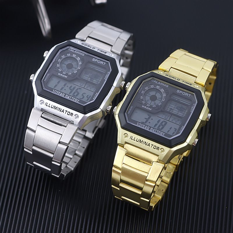 Electronic Watch Men's Steel Band Outdoor Sports Waterproof Small Square Watch Trendy Luminous Electronic Watch