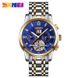 Orologio meccanico completamente automatico da uomo, con cinturino in acciaio inossidabile, fibbia pieghevole singola, fondo cavo, moda casual, luce notturna, Time Beauty