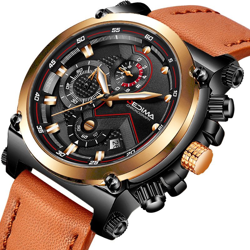 Orologio sportivo multifunzionale impermeabile a tre occhi e sei pin con cinturino in vera pelle, modello di vendita più venduto