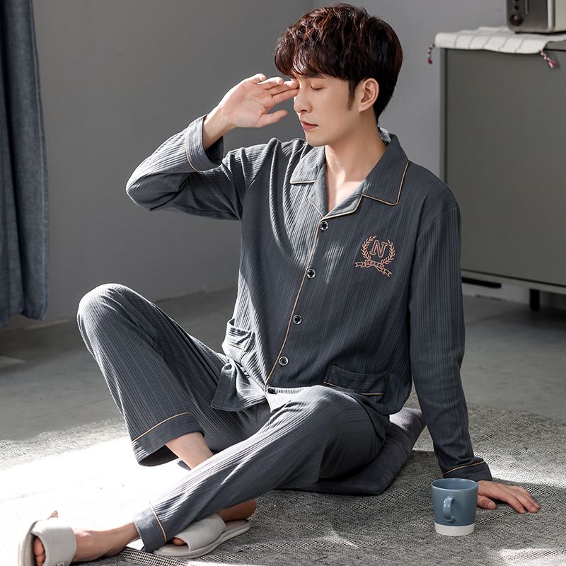 Pigiama da uomo a maniche lunghe in puro cotone, primavera e autunno, per ragazzi e ragazze, invernale e autunnale, sottile e oversize, completo da casa