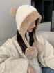 Winter Cold-Proof Hat Large Head Circumference Plush Hanging Ball Cute Ear Protection Hat for Women Ear Covering Fleece-Lined Thickened Color-Block Knitted Hat