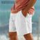 Pantaloncini casual da uomo in cotone e lino - Vita elastica con coulisse, gamba dritta e traspiranti, per l'uso quotidiano e in spiaggia