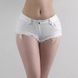 White Low Waist Frayed Hem Denim Shorts for Women, Summer Thin Style, Hip-Hugging, Distressed Look