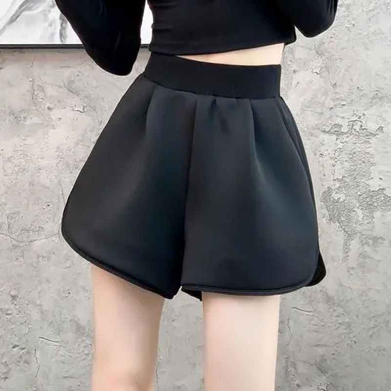 Pantaloncini invernali autunnali per le donne, neri, a vita alta, in cotone, con gamba larga, stile sportivo, dimagranti