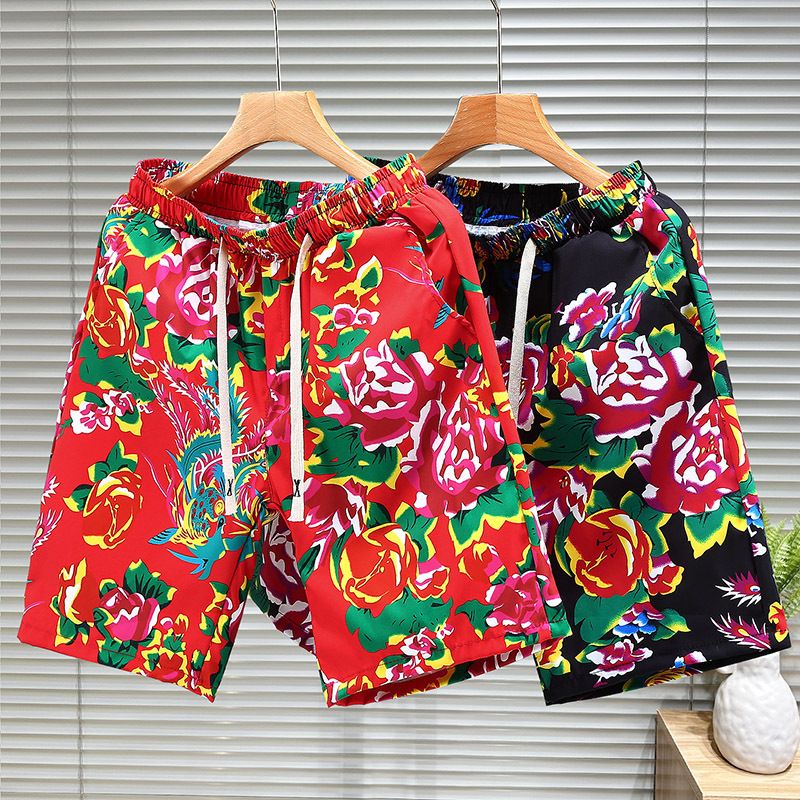 Pantaloncini sportivi da spiaggia estivi a fiore grande nord-est Pantaloni a gamba dritta a 5 punti da uomo alla moda