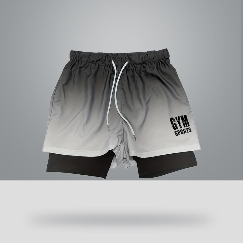 Sports shorts men's summer thin quick drying breathable and anti glare 2-in-1 marathon fitness training pants