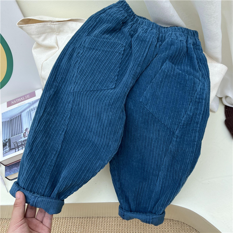 Pantaloni casual a righe sottili spessi per mamma e bambino in velluto a coste coreano per bambini autunno/inverno 2024