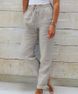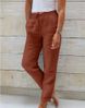 Pantaloni casual in cotone e lino tinta unita con elastico in vita e vita alta da donna