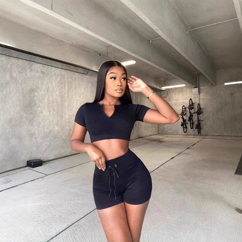 2025 Leisure High Waist Threaded Drawstring Pants Pit Strip Zipper Open Collar Sports Cycling Set