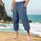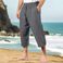 Pantaloni da uomo in cotone e lino, estivi, casual, da spiaggia, con coulisse in vita, elastici, comodi e traspiranti, a gamba dritta