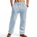 Pantaloni da uomo lunghi casual traspiranti comodi e dritti a righe verticali con coulisse in lino estivo da spiaggia 2025