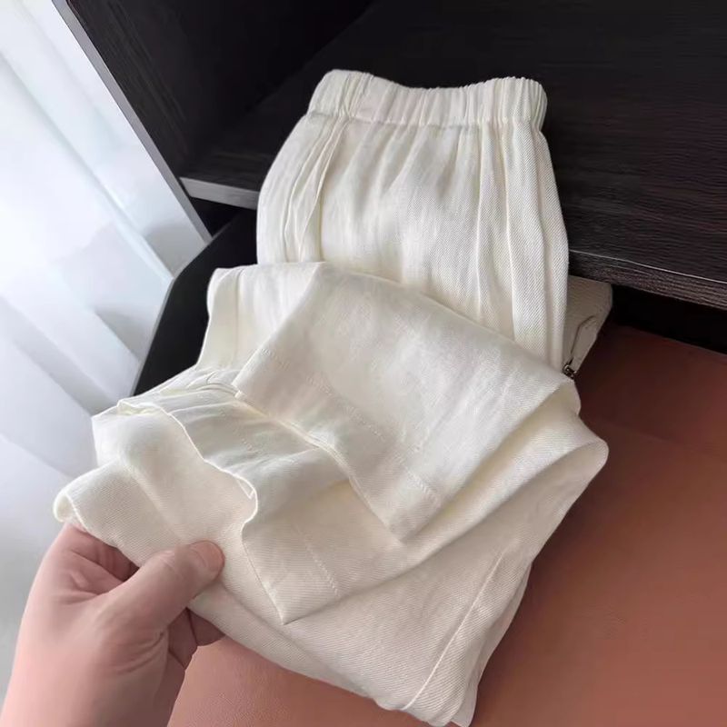 2024 New Cotton Linen Women's Plus Size Wide Leg Pants High-end White Linen Pants for Women Summer Thin Style
