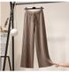 Pantaloni larghi in maglia a vita alta da donna – Pantaloni drappeggiati in stile coreano (bianco/kaki/grigio/nero, taglia unica)