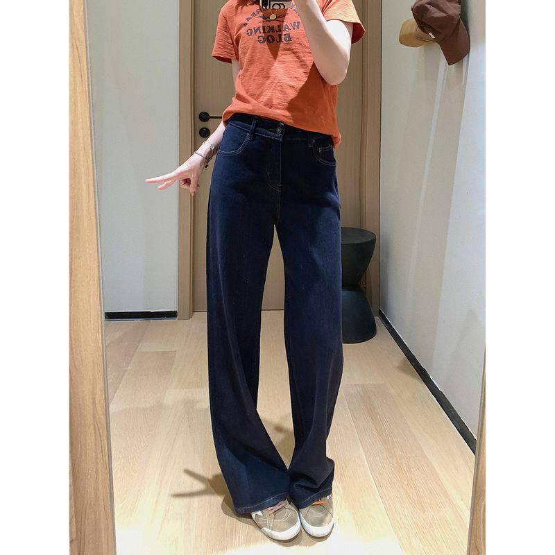 Jingdian primary color tencel cotton universal elastic line narrow version wide leg straight jeans! #