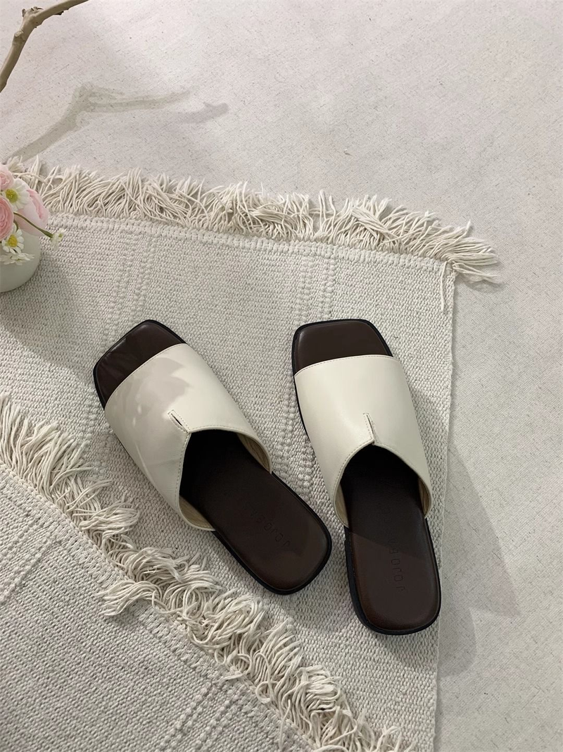 Home Anti slip Soft Leather 2024 New Sandals One line Summer Fashion Versatile Flat Bottom Soft Sole External Wearing Slippers