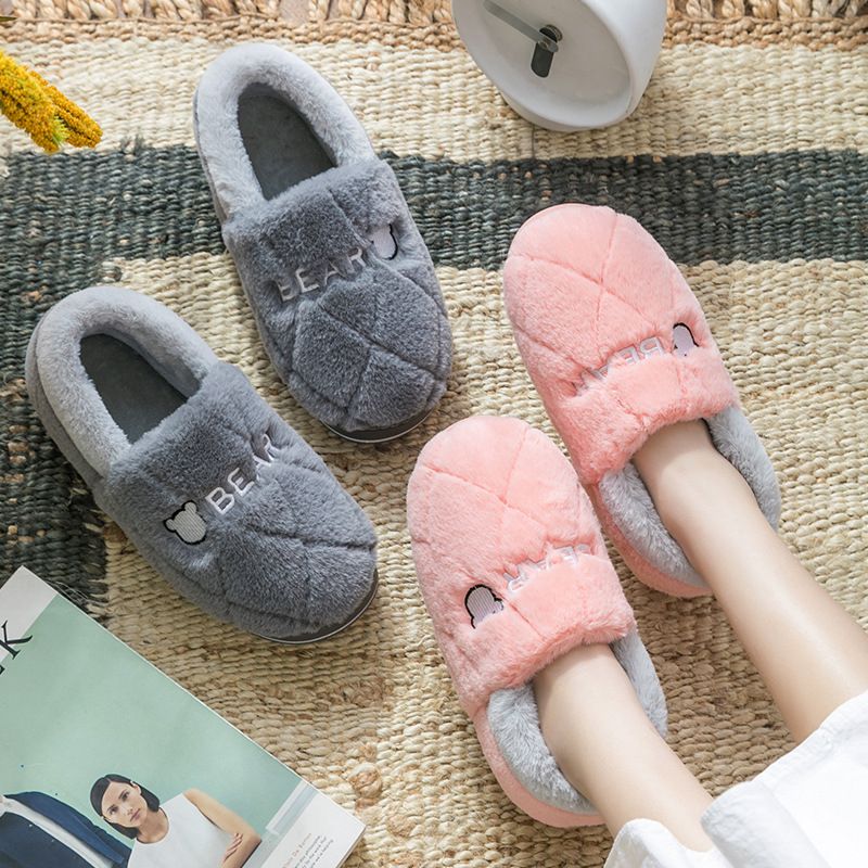 Winter Indoor Home Thick-Soled Cotton Slippers for Women, Furry Round-Toe Shoes, Indoor Slippers