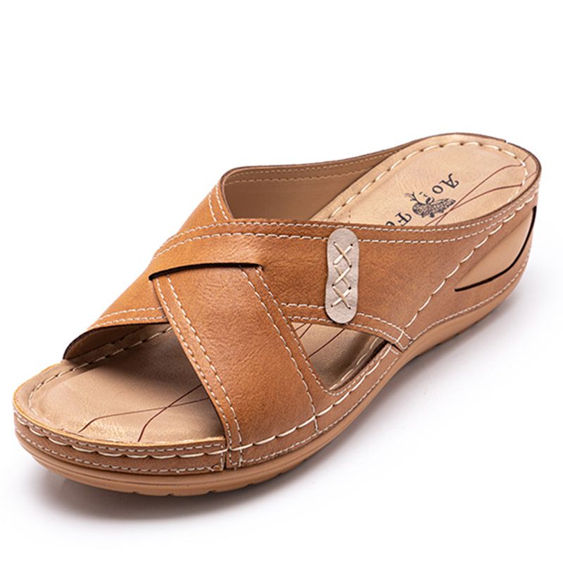 Pantofole da donna di grandi dimensioni, scarpe da mamma cucite con tacco in pendenza, nuove e fresche, estive