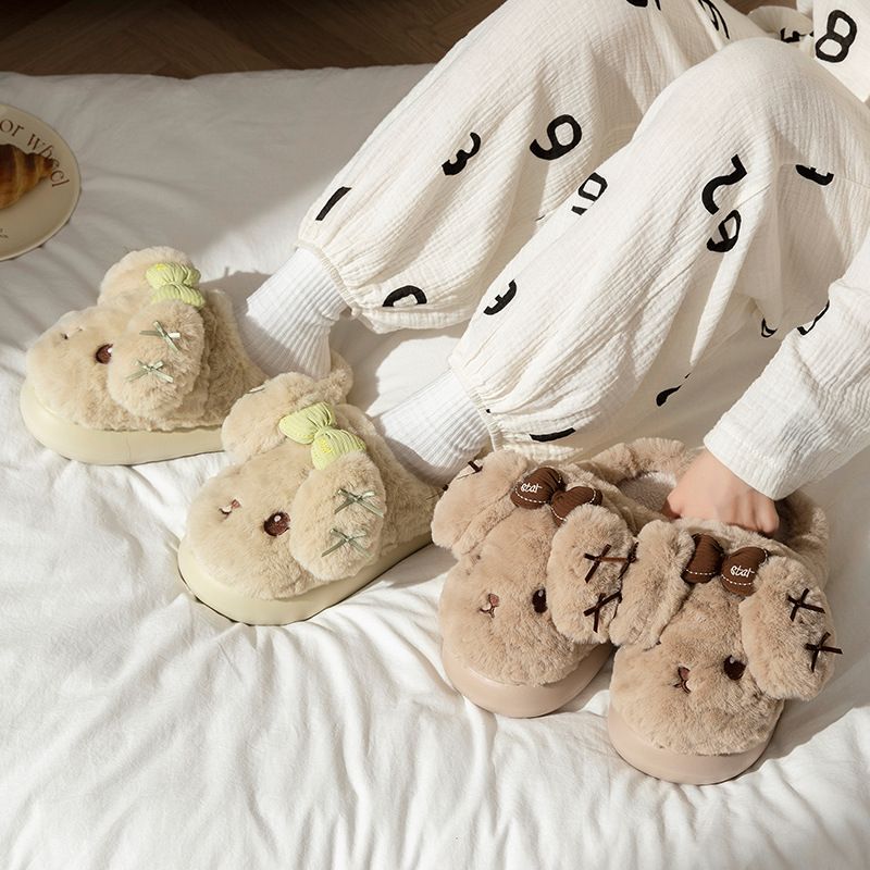 2025 Fall/Winter New Women's Cartoon Bow Fuzzy Cotton Slippers Fashionable Versatile Casual Shoes