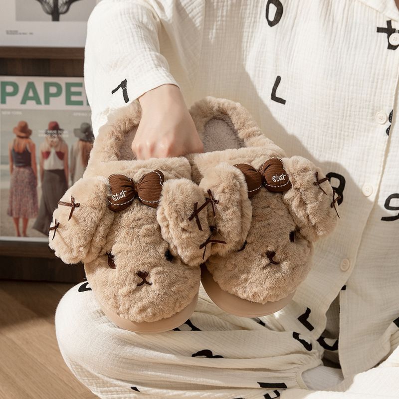 2025 Fall/Winter New Women's Cartoon Bow Fuzzy Cotton Slippers Fashionable Versatile Casual Shoes