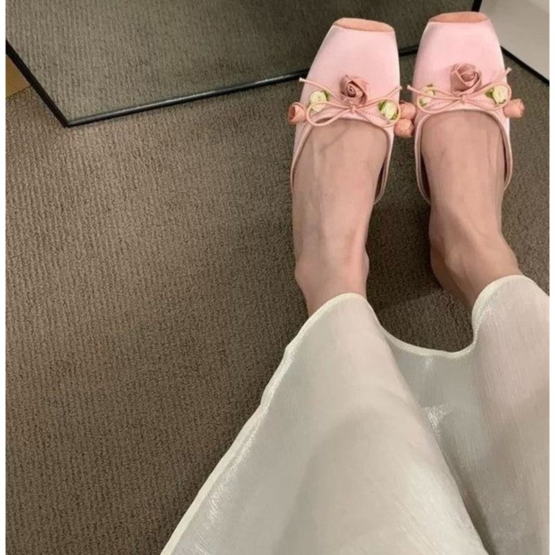 Women's Half Slippers 2024 Spring New Flat Closed-Toe Fairy Style Single Shoes Outdoor Pink Mules