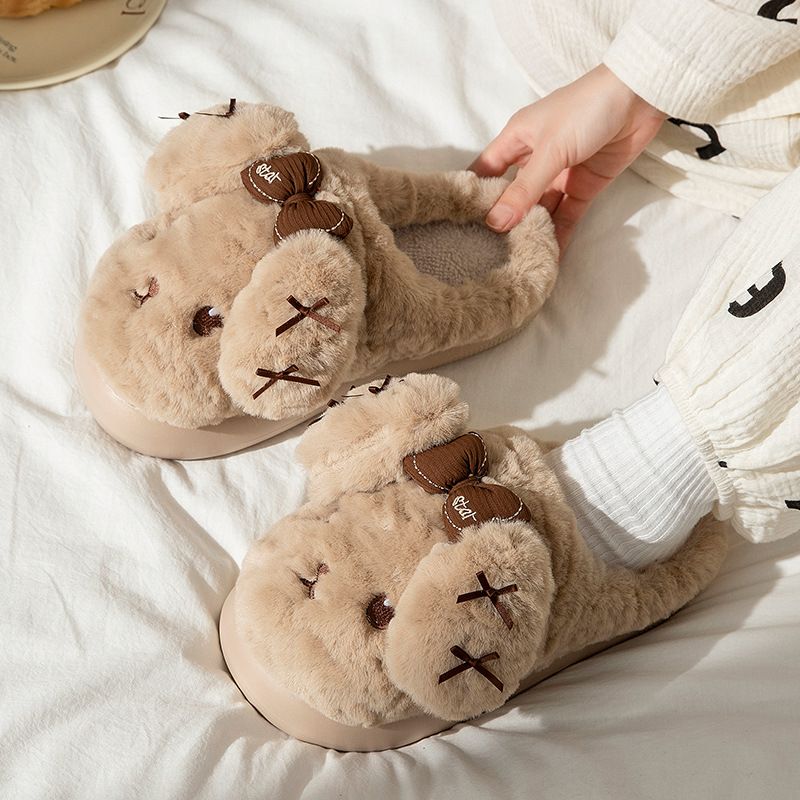 2025 Fall/Winter New Women's Cartoon Bow Fuzzy Cotton Slippers Fashionable Versatile Casual Shoes