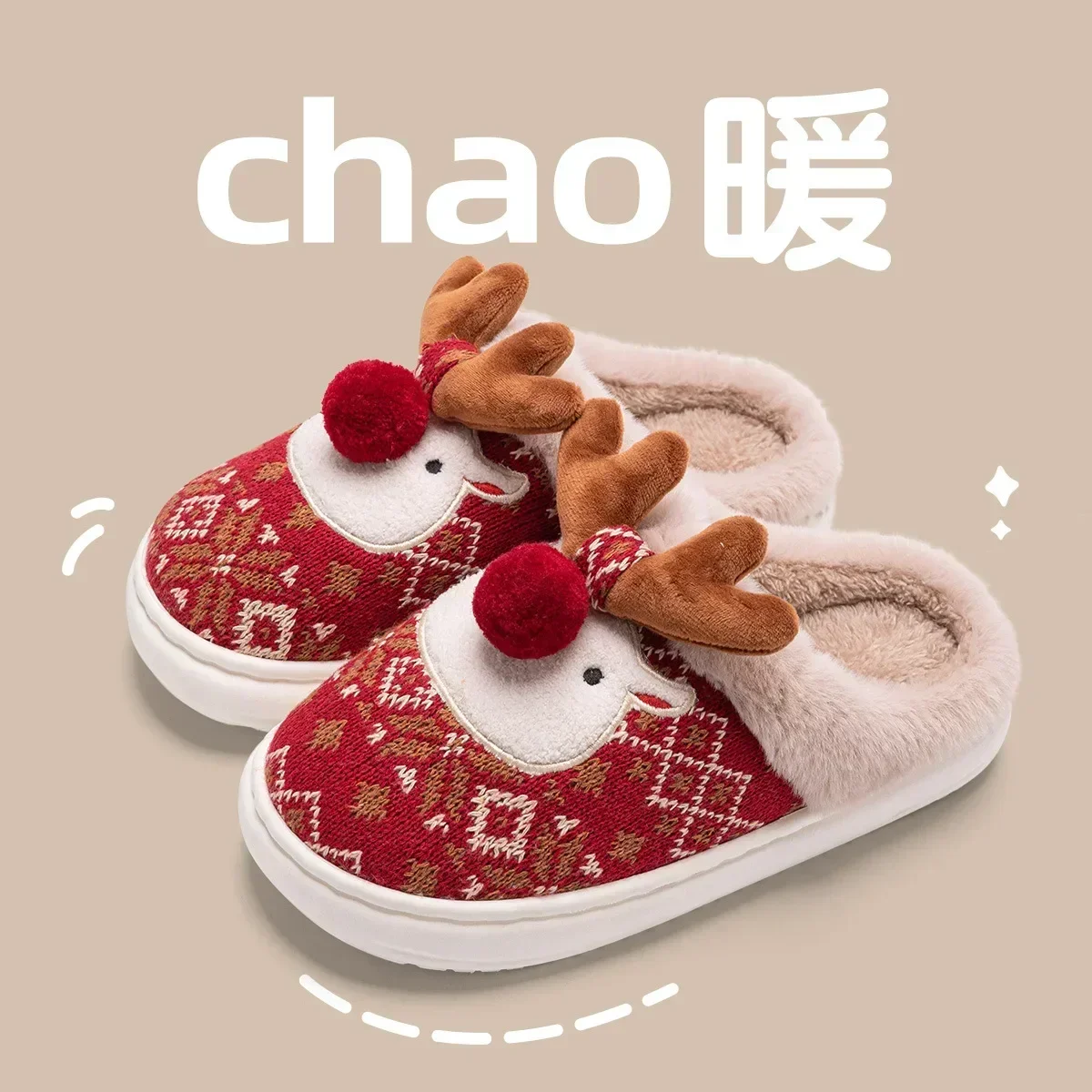 Pantofole invernali in cotone natalizio per donna, con simpatici cartoni animati, antiscivolo, per interni, casa, pavimento, scarpe, moda, feste