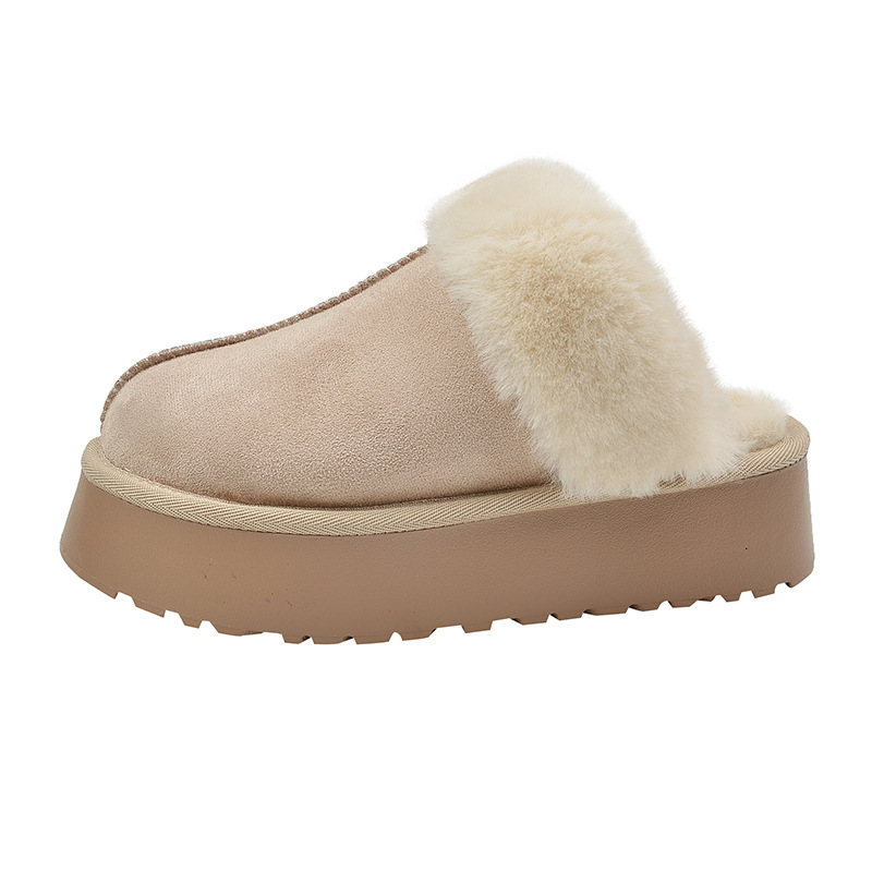 Pantofole pelose Baotou da donna da indossare fuori autunno e inverno nuovo stile celebrità di Internet muffin suola spessa più scarpe di cotone pigro calde di velluto