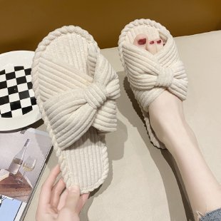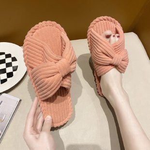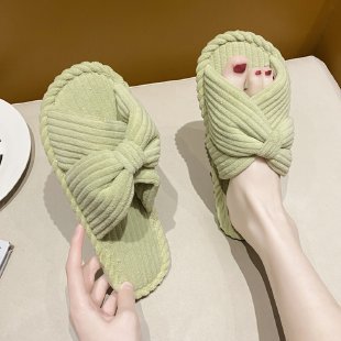 Skin friendly brushed home slippers for women in spring and summer with soft soles, comfortable and quiet indoor floor cotton slippers, anti slip flat bottom slippers