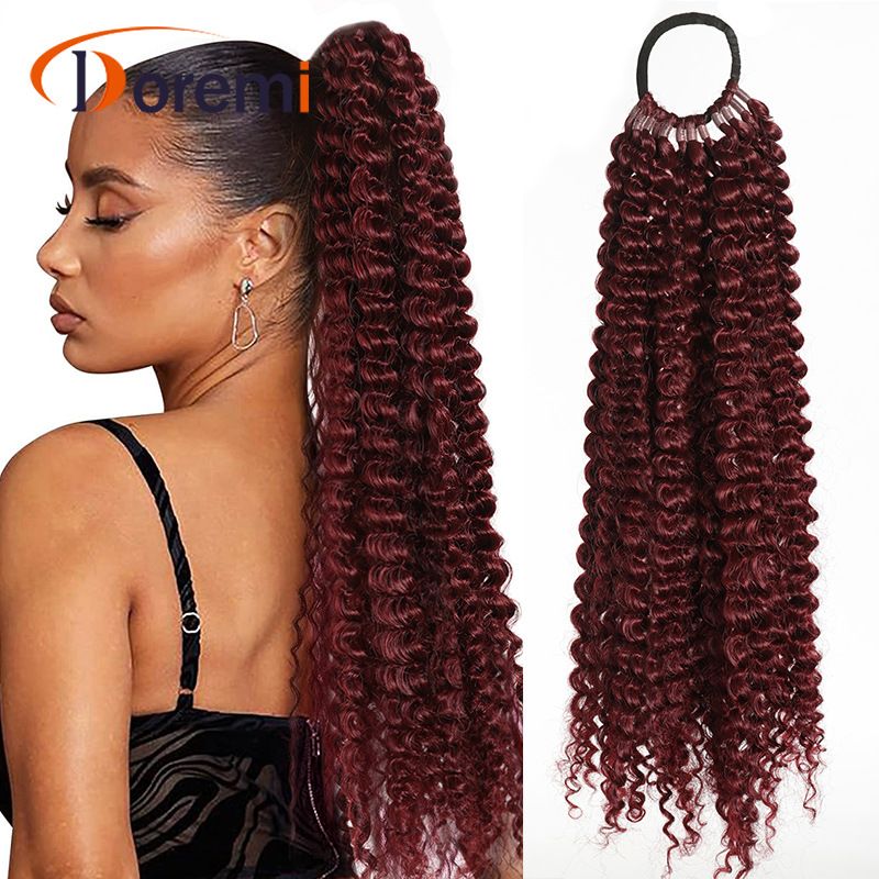 Parrucca africana in pelle con coda di cavallo in fibra chimica sintetica per donna, capelli ricci estesi, coda di cavallo avvolgente da 50 cm