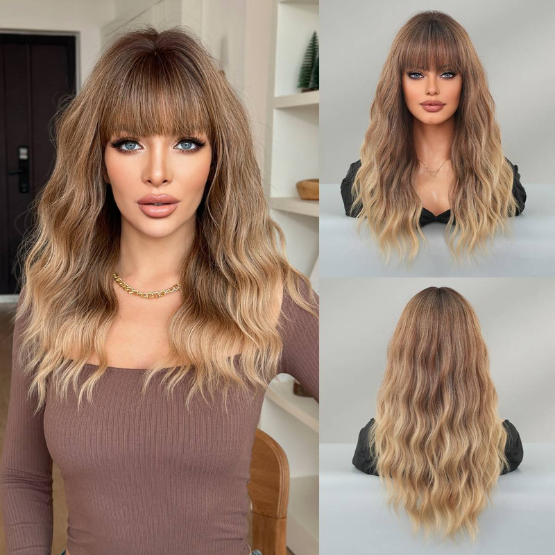 Parrucca Capelli ricci ondulati di media lunghezza Meccanismo Parrucca copricapo completo