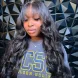Parrucca da 30 pollici in pizzo con parte centrale a T e onda del corpo, con frangia, per donne nere