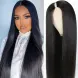 Parrucca dritta con parte a V, capelli umani, densità 180%, colore naturale, capelli brasiliani al 100% vergini