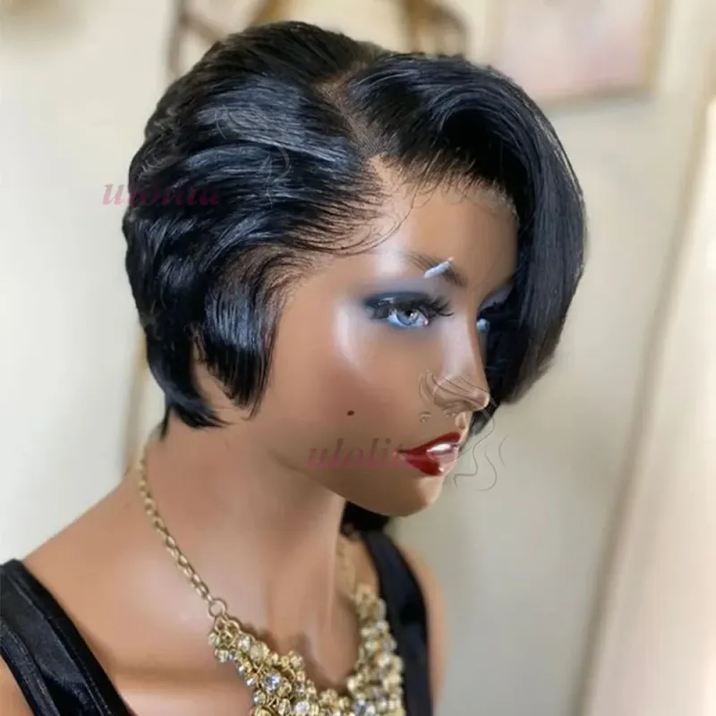 Parrucca Pixie Cut Parrucche di capelli umani in pizzo trasparente per donne Parrucca corta dritta Bob Parrucca in pizzo 13X4 Parrucche di capelli brasiliani Remy pre-pizzicate