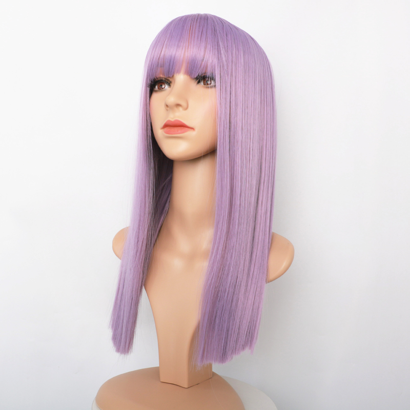 Parrucca sintetica Cosplay per capelli lisci con frangia viola da donna Ragazza vivace e carina