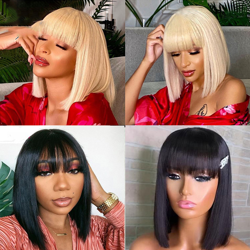 Parrucca sintetica per capelli da donna con frangia, testa bobo, capelli corti e lisci, meccanismo per capelli in fibra sintetica per donna
