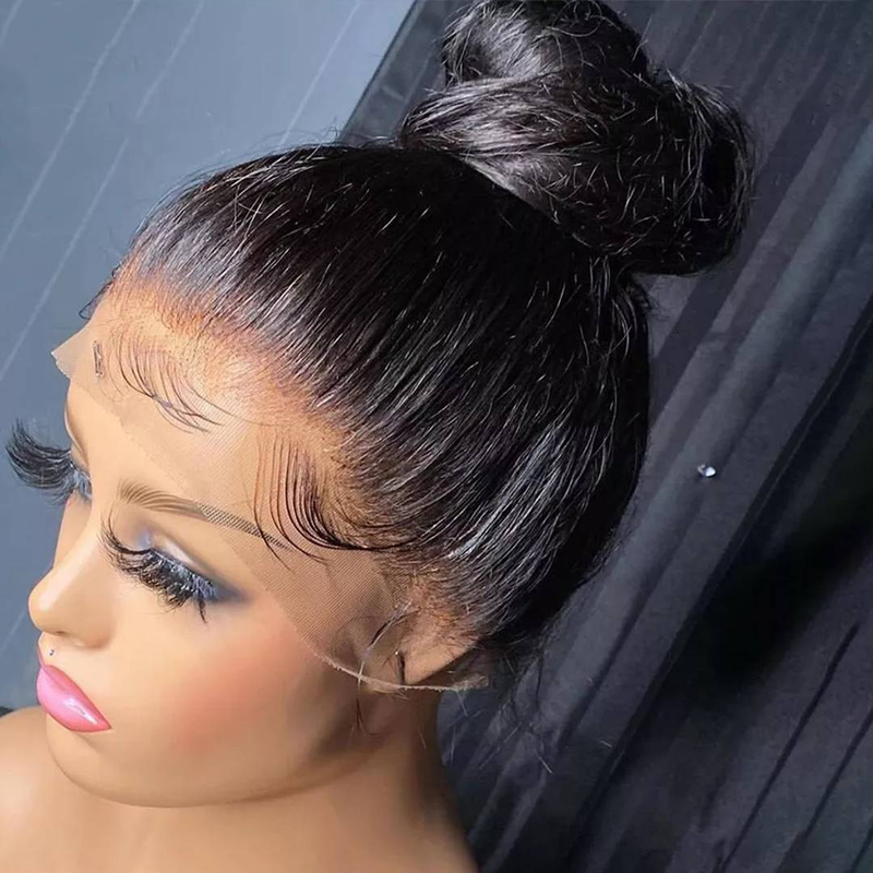 Parrucche frontali in pizzo 360 nero naturale per donne, capelli vergini brasiliani pre-pizzicati con capelli del bambino, parrucche di capelli umani lisci senza colla, densità 180%, 10"-22"