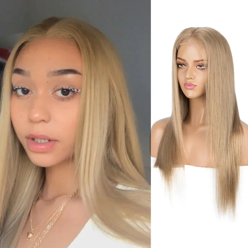 Gold Blonde Colored Human Hair Wigs For Women 13X6X1Lace Front Brazilian Hair Wigs 22 Inch Long BLACK Straight Cosplay Wig For Women