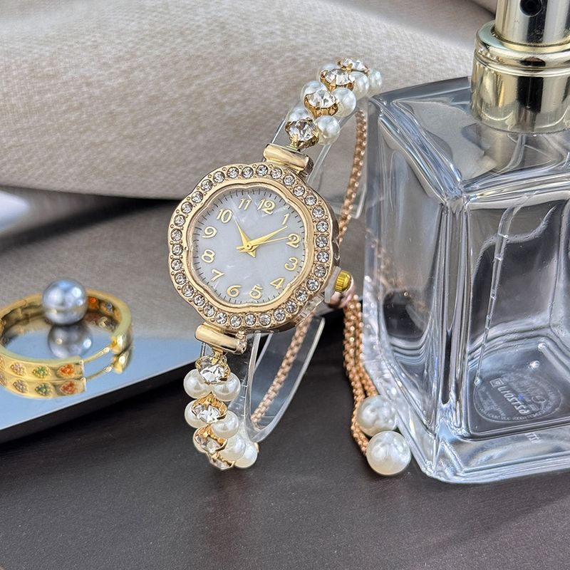 Orologio con quadrante in perle e diamanti, cinturino compatto, doppia fila di perle, superficie digitale estraibile, elenco, lavoro, quotidiano, compleanno, anniversario, regalo di San Valentino