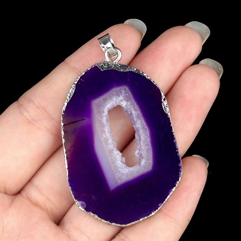 Collana con ciondolo in pietra semipreziosa naturale di forma irregolare, agata verde viola, creazione di gioielli fai da te, orecchini