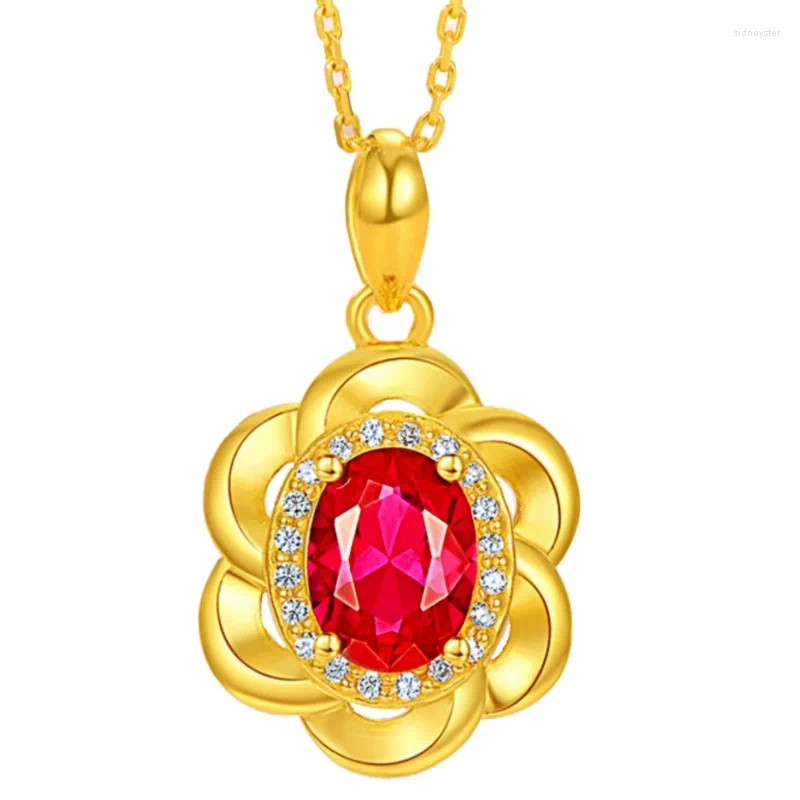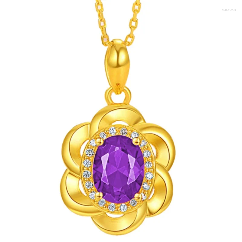 Collane con ciondolo rotante SUOWER Ametista Verde Tormalina Fiore Collana Moda Rosso Prugna A Forma di Fiore