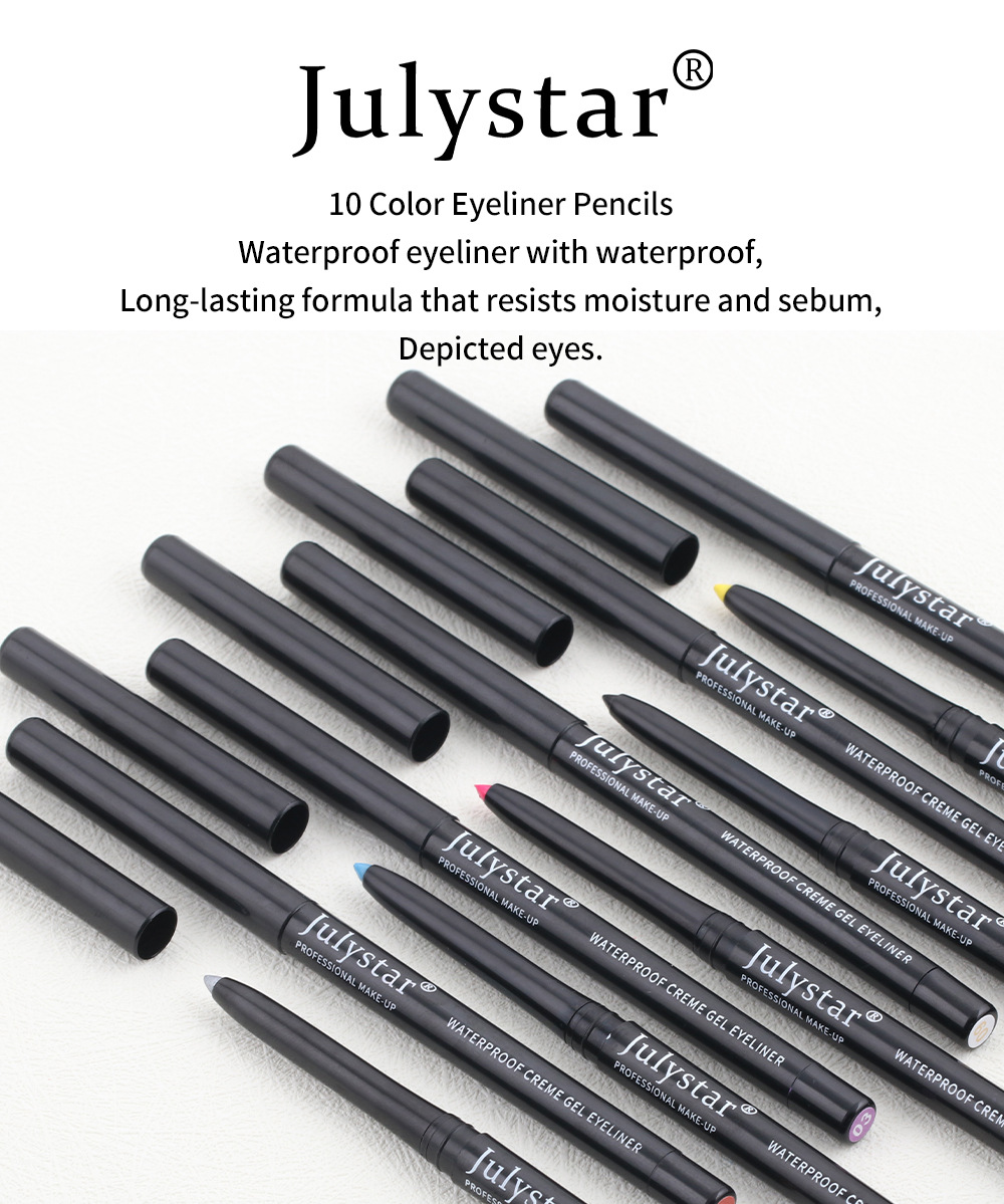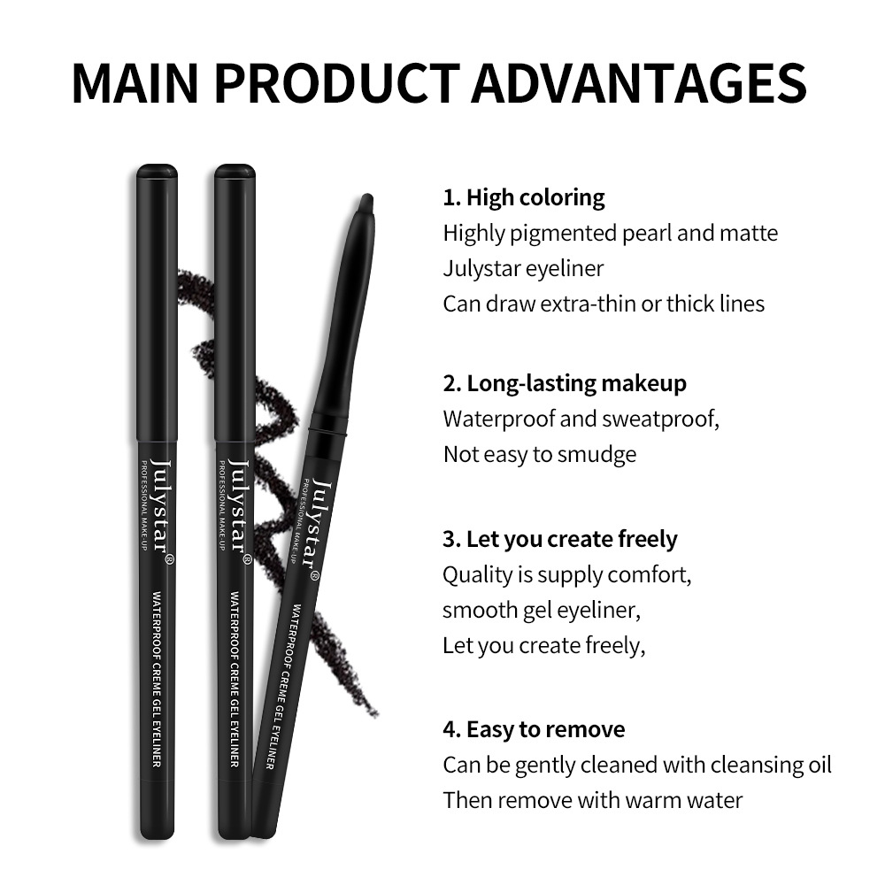 Julystar's new durable waterproof non smudging eyeliner gel pen, color slim portable eyeliner pen
