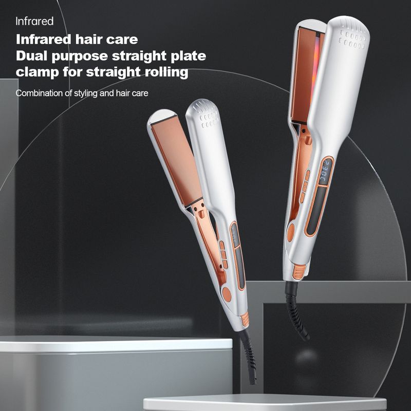 Piastra per capelli a piastra larga 2 in 1 con regolazione della temperatura a infrarossi, styling e cura
