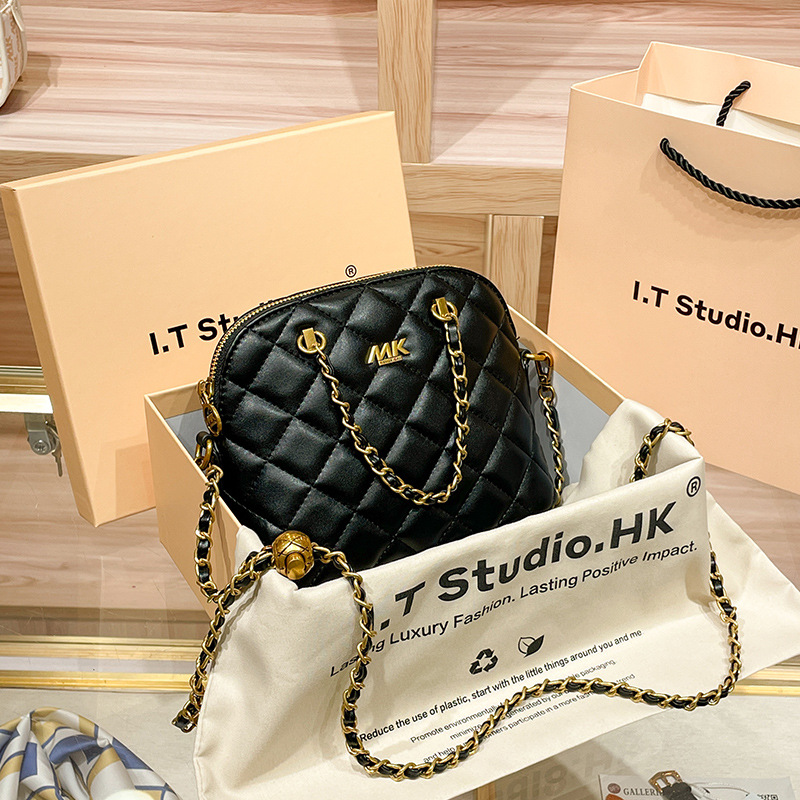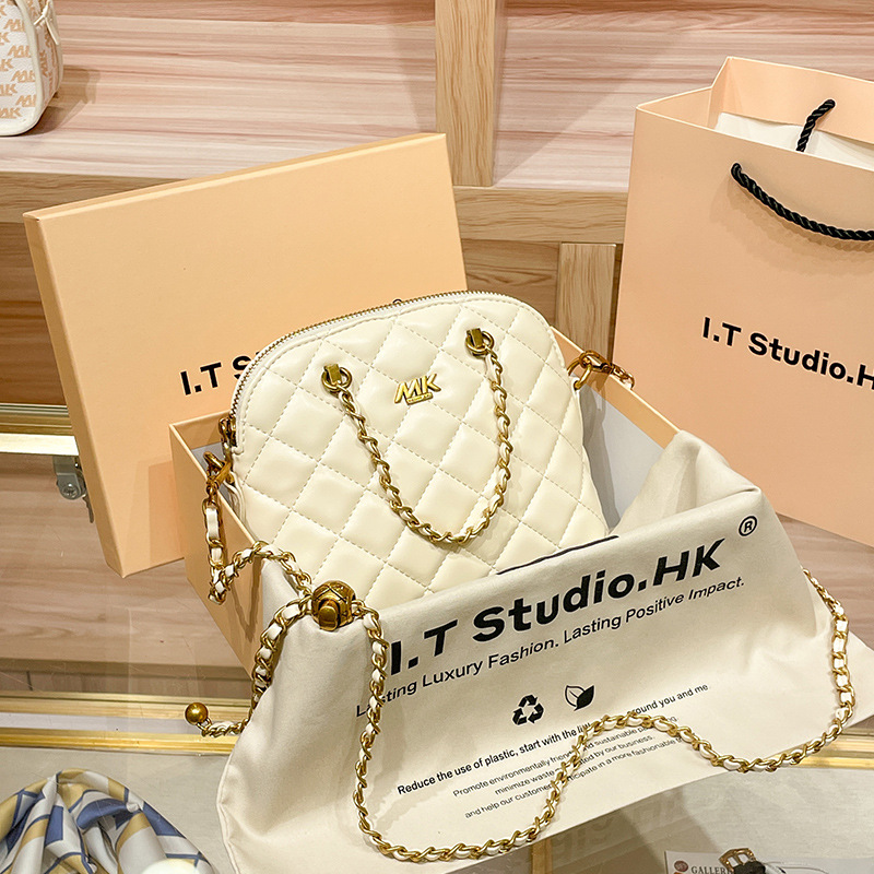 Genuine leather small Xiangfeng Lingge chain bag 2023 new fashionable and high-end feeling niche one shoulder crossbody shell bag for women's summer