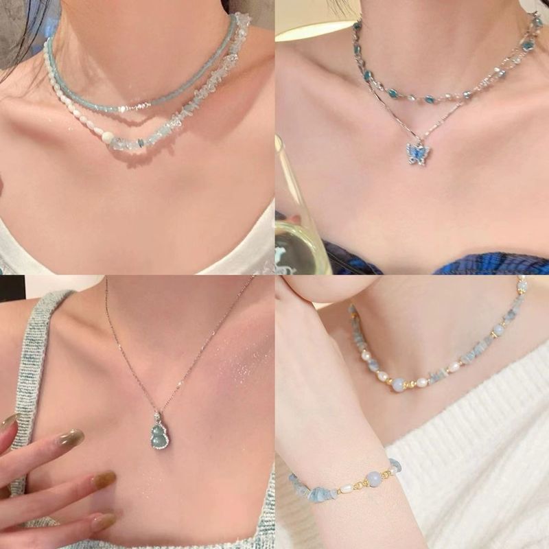 Piccola collana di perline di vetro a farfalla con diamanti, temperamento di nicchia, atmosfera, catena per clavicola, lusso leggero,