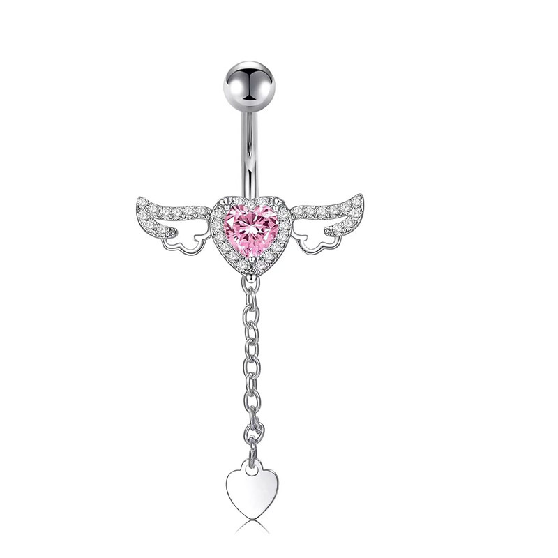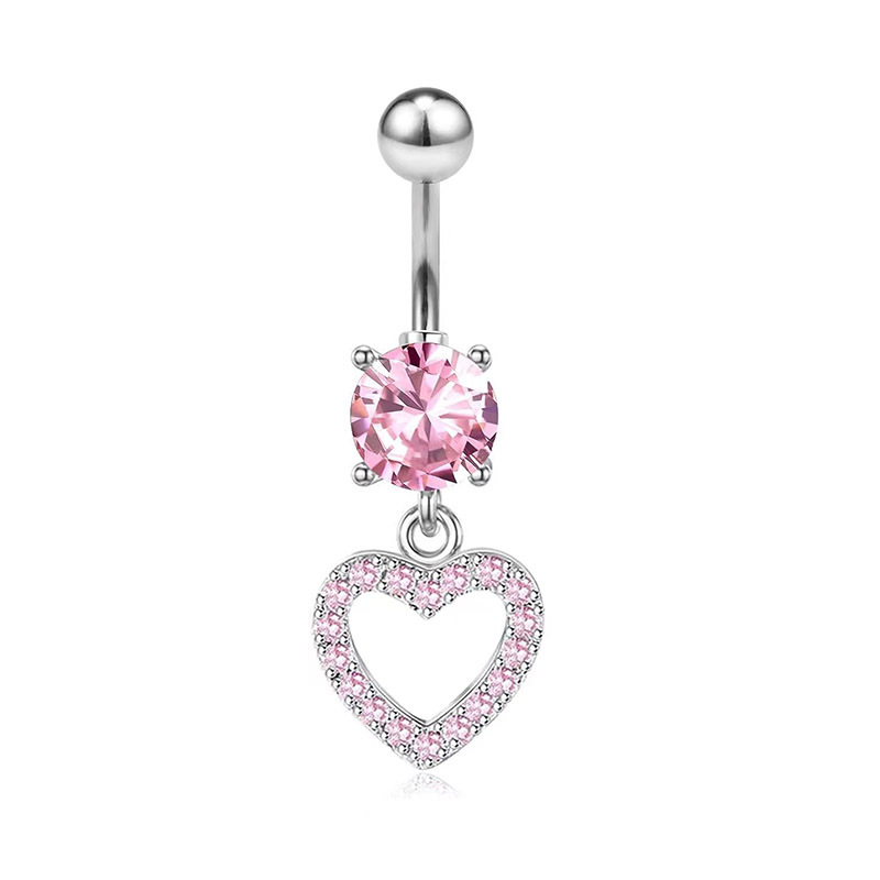 Piercing all'ombelico con ciondolo a forma di farfalla, stile cross-border, serie rosa, scintillante, all'ingrosso, nuovo, con cuore e zircone.