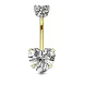 Piercing per ombelico in acciaio inossidabile anallergico, bottone dorato, zirconia cubica di design, 6 diametri, a forma di cuore, per corpo