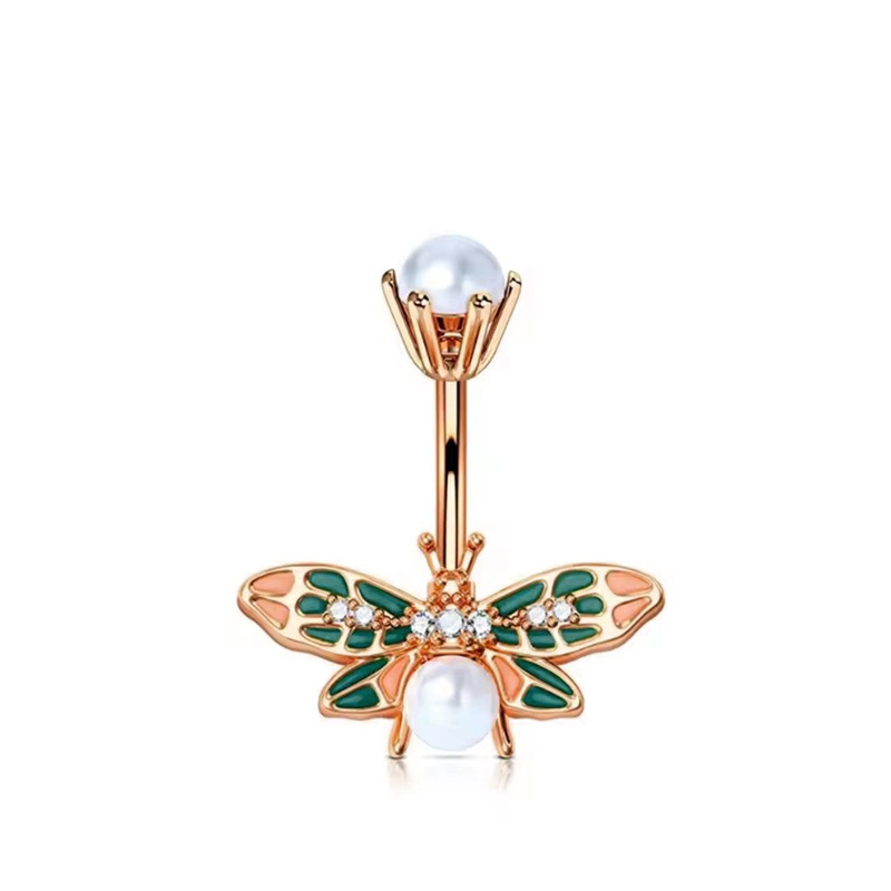 Piercing per ombelico in acciaio inossidabile multicolore in stile europeo e americano con farfalla e zircone