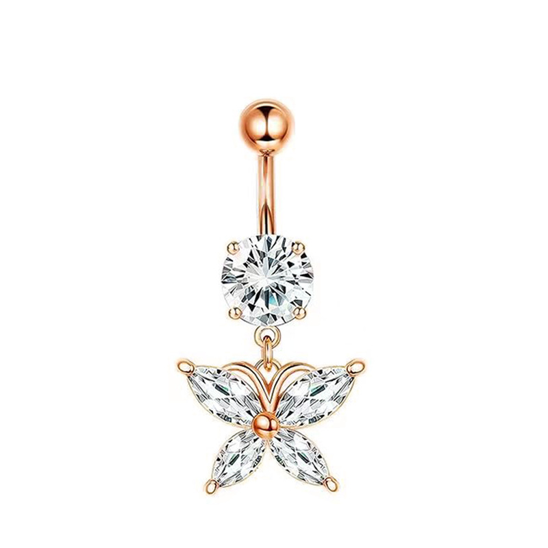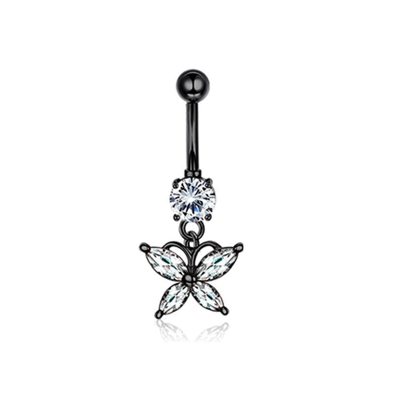 Piercing transfrontaliero europeo e americano con ciondolo a forma di farfalla con occhio di cavallo e zircone AAA, anello per ombelico