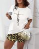 Pigiama casual da donna in due pezzi, set da due pezzi con maglietta a maniche corte e pantaloncini con stampa a cuore leopardata